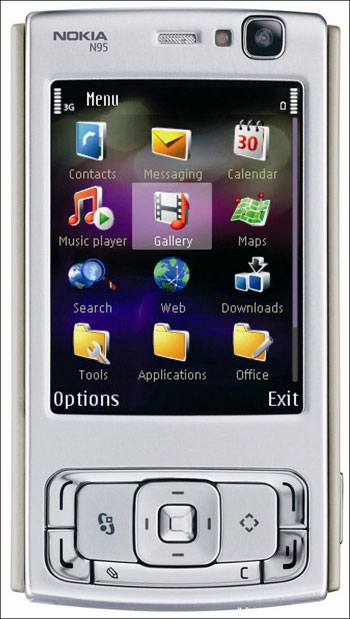 Nokia N95 является флагманом линейки мультимедийных смартфонов компании и первым HSDPA аппаратом в Nseries. Устройство представляет собой "двухсторонний" слайдер (то есть половинки корпуса сдвигаются как вверх, так и вниз), оборудован GPS-модулем и 5-Мп камерой. В камере используется оптика Carl Zeiss, возможна съёмка видеоклипов с " DVD-качеством" (30 кадров в секунду). Из других характеристик отметим дисплей с QVGA-разрешением и поддержкой 16М цветов, стереодинамики, 3,5-мм аудиоразъём, слот для карт памяти microSD. В дополнение к HSDPA поддерживаются также стандарты WLAN, EDGE и WCDMA, а также UPnP (Universal Plug and Play). | |