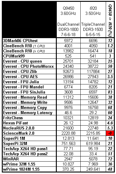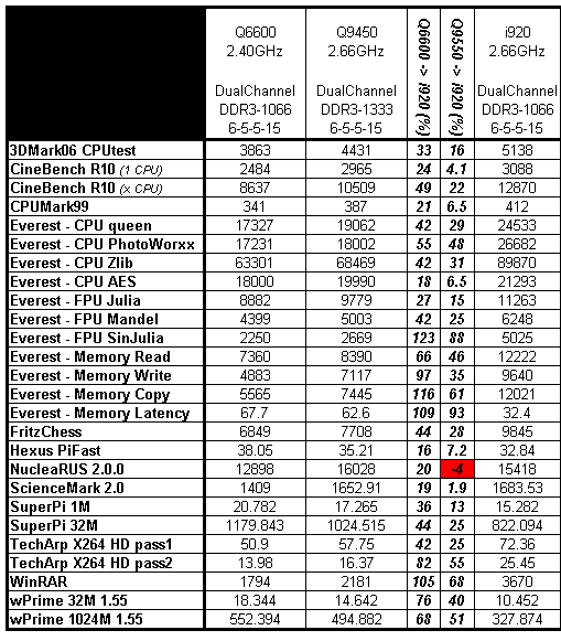 Что ж, вывод однозначен. Сохранив почти линейный прирост производительности с ростом частоты CPU, Core i7 920 смог удержать своё преимущество над Q9450 почти во всех тестах.
