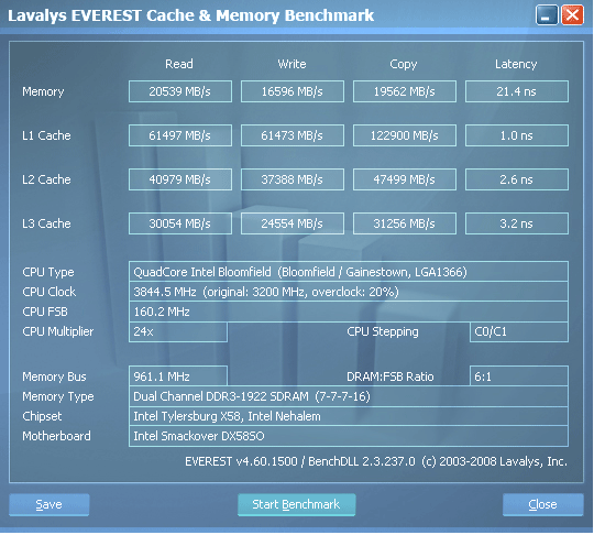 В-третьих, как выяснилось, Core i7 не любит чересчур высокой пропускной способности памяти. Наш тестовый кит мог покорить частоты 920-930МГц при задержках 6-6-5-15, но, как ни странно, абсолютно все тесты показали проигрыш относительно той же частоты с задержками 7-7-7-16 или 8-7-6-18.