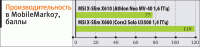 Результаты же тестов, связанных с производительностью системы, могут обрадовать лишь тех, кто рассматривает Athlon Neo как конкурента именно Atom – с соперником же в своей ценовой категории Neo справиться не может даже несмотря на более высокую тактовую частоту. Почти 20%-ный проигрыш в скорости кодирования видео, 18%-ный – в «общем зачете» PCMark05, похожие результирующие цифры в остальных тестах – все это говорит о том, что попытка утвердиться на новой рыночной территории оказалась недостаточно подкрепленной технологически – все-таки ядру К8, некогда очень успешному, уже давно пора на пенсию, и выводить его в бой можно было только против заведомо более слабого противника. В нашем же случае ситуация сложилась так, как это часто бывает в «дворовых баталиях»: новичок Neo с легкостью обидел «малыша» Atom, но тут на помощь последнему подоспел «старший товарищ» CULV...